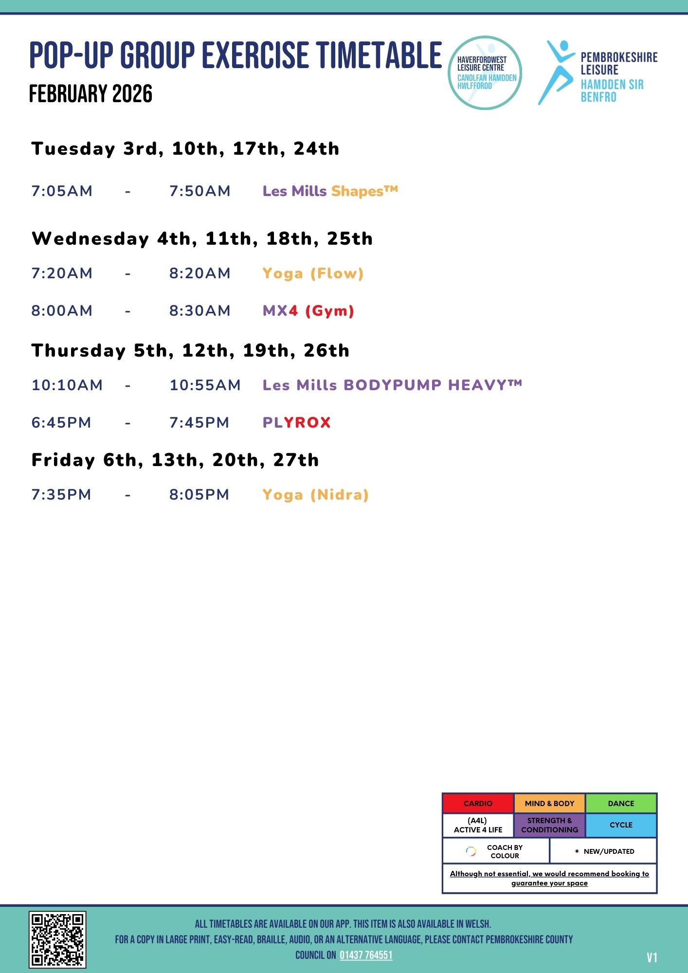 Group Exercise Timetable